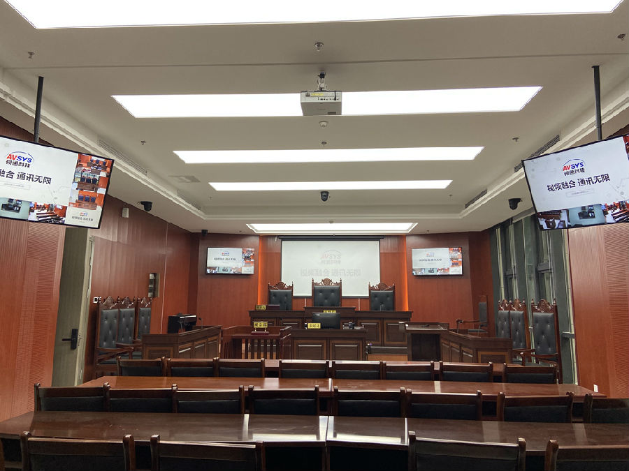 本项目共建设1个模拟法庭,使用1台南宫NG·28科技(AVSYS)高清庭审主机,利用网络技术、先进的多媒体技术以及集中控制技术,实现审理过程中的实况采集、证据公开展示、笔录校对、审理直播,并对审理庭内部声、光、电等各种设备进行集中自动化控制,提供审理信息化的强大应用。